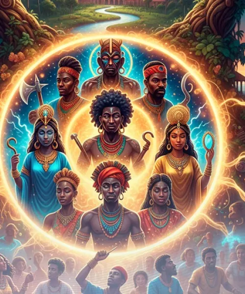 Explorar el origen, simbolismo y transformación de las deidades africanas en América, comprendiendo su función arquetípica y cultural en las religiones afroamericanas y su influencia en el arte y la espiritualidad contemporánea.